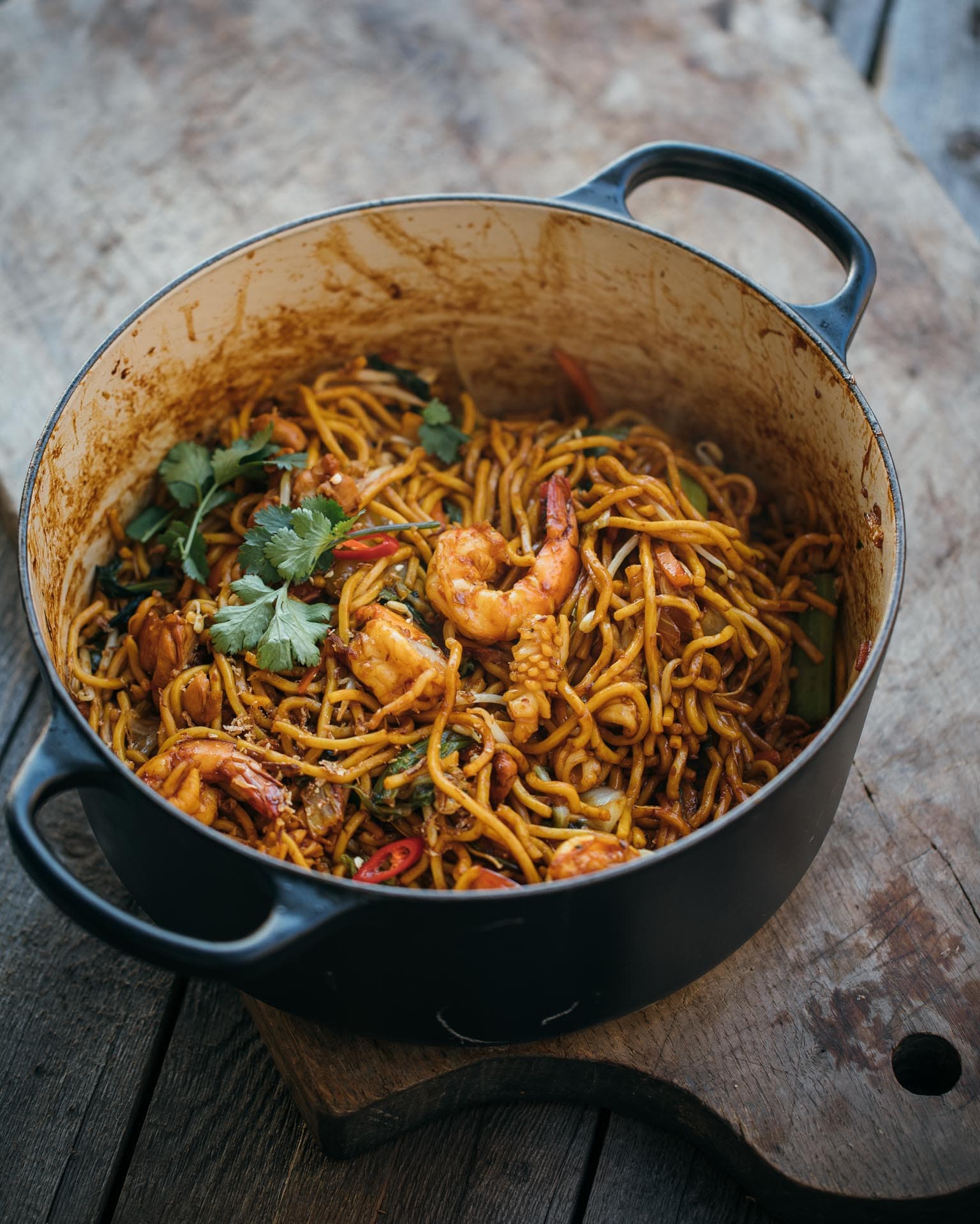 The most common problem with making stir-fried noodles at home is one of volume. You want to make enough for a whole family but your wok sadly isn’t up to the task. Don’t blame the wok or the stove, it’s not their fault.