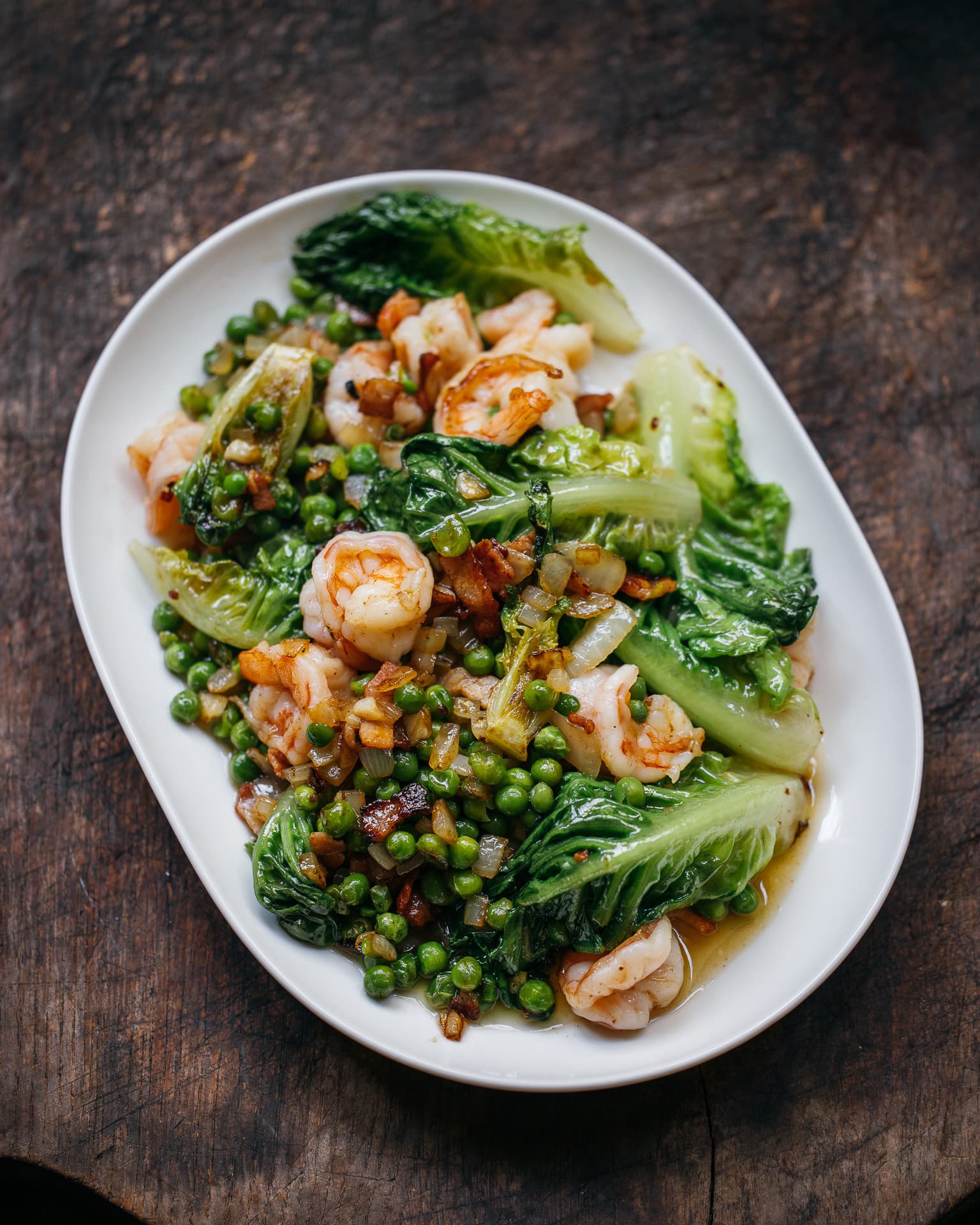 Is Chinese-French bistro a thing? Petits pois à la française is a classic French dish of braised peas and lettuce with bacon and onions, and frankly we should all make it more often.